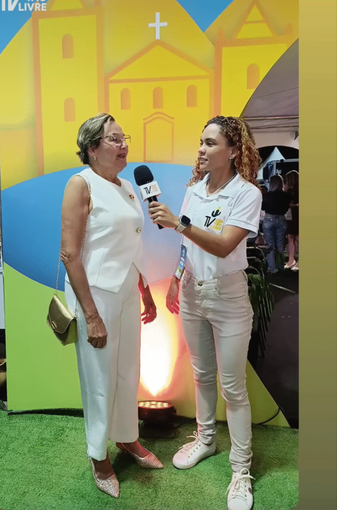 Durante a feira, conversamos com autoridades locais e estaduais. A prefeita Valdice Castro ressaltou: