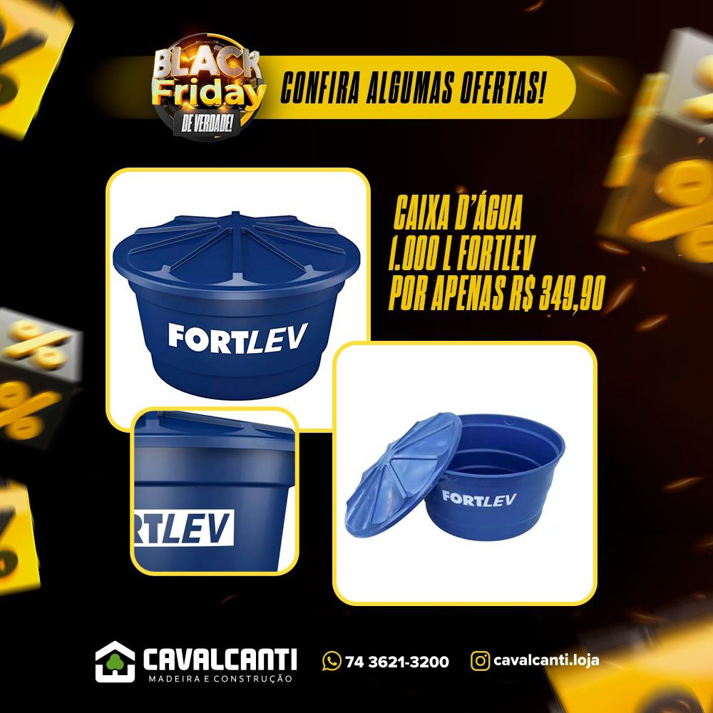 Aproveite essa super Black Friday e vá adquirir a caixa d água da sua casa, de seu comércio, tendo a certeza na qualidade, durabilidade e segurança, comprando na Cavalcanti você tem a garantia no seu produto, venham conferir e realizar a sua compra.