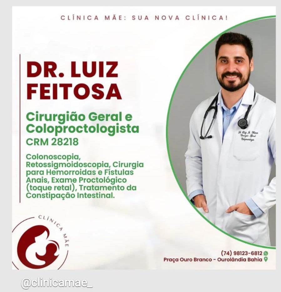 -Consulta com o cirurgião geral é coloproctologista Dr. Luiz Feitosa, especialista em tratamentos de constipação, hemorroida, fístula e exames de toque retal;