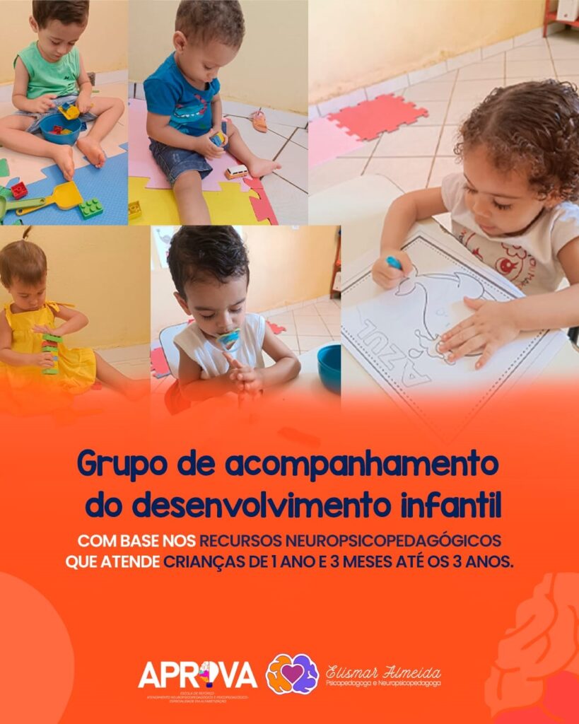 Então, apresento a vocês o APROVA, um centro de acompanhamento e desenvolvimento infantil, liderado pela Neuropsicopedagoga Elismar Almeida. Sua ênfase e base são em recursos neuropsicopedagógicos que atendem crianças entre 1 ano e 3 meses até os 3 anos.