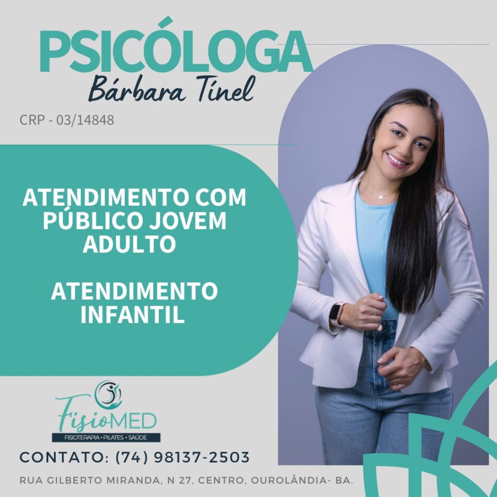 Neste sábado, dia 25 de março, a psicóloga Bárbara Tínel estará atendendo na clínica FisioMed. A doutora tem atendimento especializado com o público Jovem adulto e, também, com o público infantil.