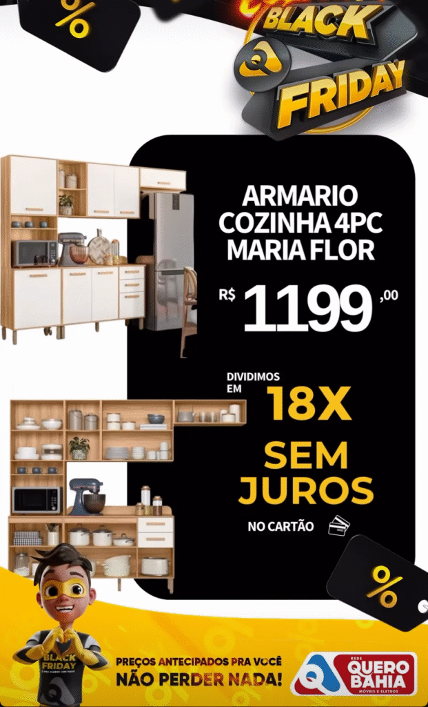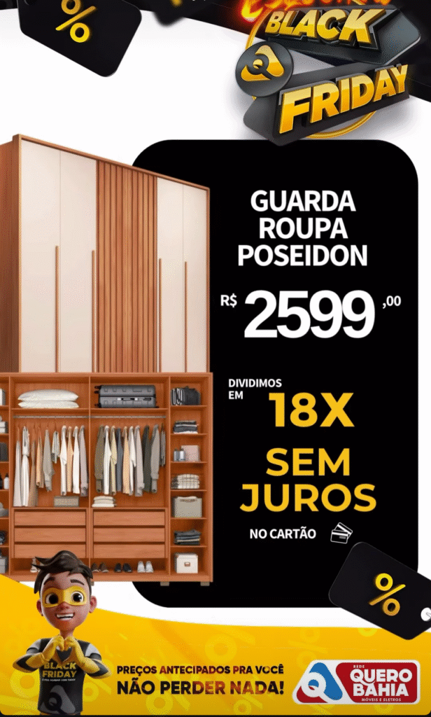 Quero Bahia resolveu antecipar a Black Friday e liberou ofertas incríveis em móveis e eletrodomésticos para você renovar sua casa sem pesar no bolso. É a chance de ouro para garantir produtos de qualidade com condições de pagamento imperdíveis!