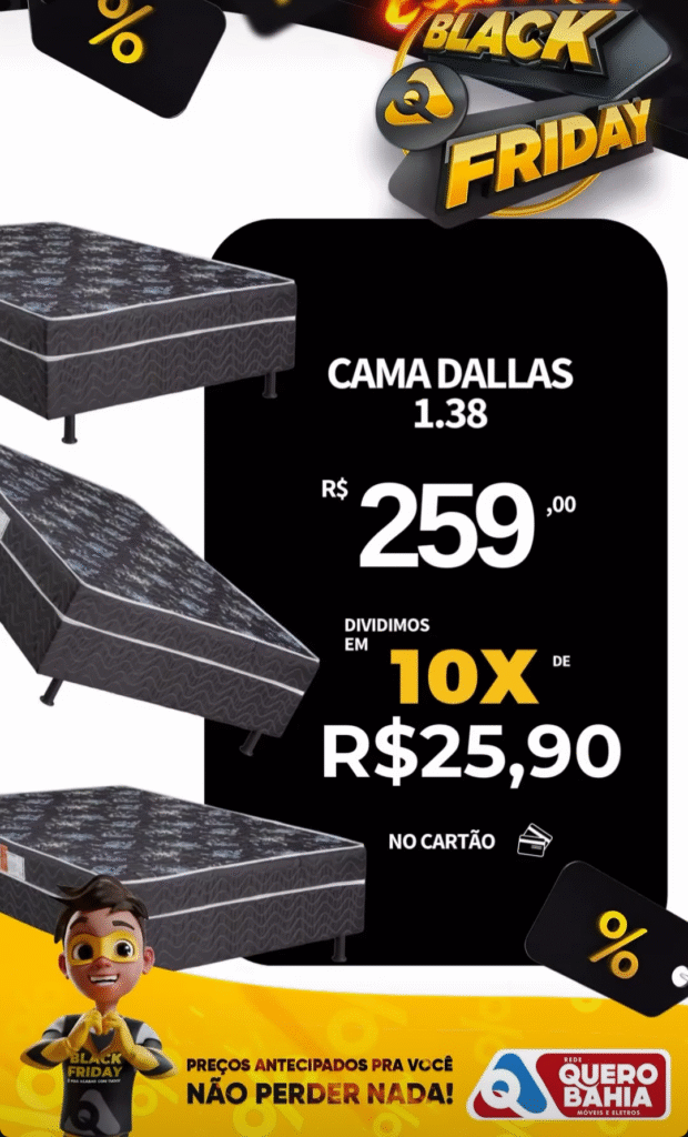 Não perca tempo! Essas ofertas com preços de Black Friday são por tempo limitado na Quero Bahia. Visite a loja mais próxima ou acesse o site e garanta seus produtos antes que acabem!