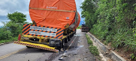 Na manhã desta sexta-feira, 02 de dezembro de 2022, um caminhão guincho não conseguiu concluir uma ultrapassagem e acabou colidindo lateralmente com uma carreta que transportava equipamentos de torres eólicas na descida da serra do Tombador, trecho da BR 324 no município de Jacobina.