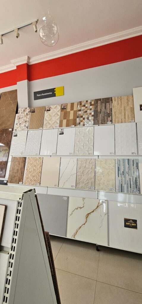Entre os destaques estão os pisos e revestimentos, que vão desde o clássico mármore até texturas inovadoras em 3D e acabamentos amadeirados, ideais para salas, cozinhas e áreas externas. Cada peça é cuidadosamente selecionada para garantir beleza estética e durabilidade.