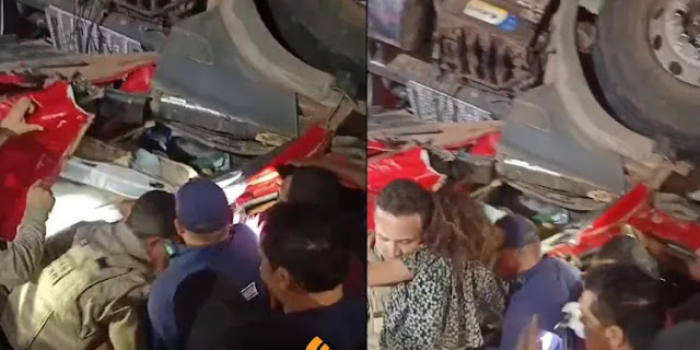 Casal morre e criança é resgatada com vida das ferragens em acidente com carreta na BR 116 Norte