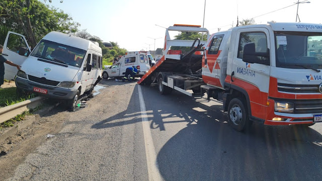 Batida entre van e ambulância deixa feridos na BR-324, em Salvador — Foto: Rildo de Jesus/TV Bahia