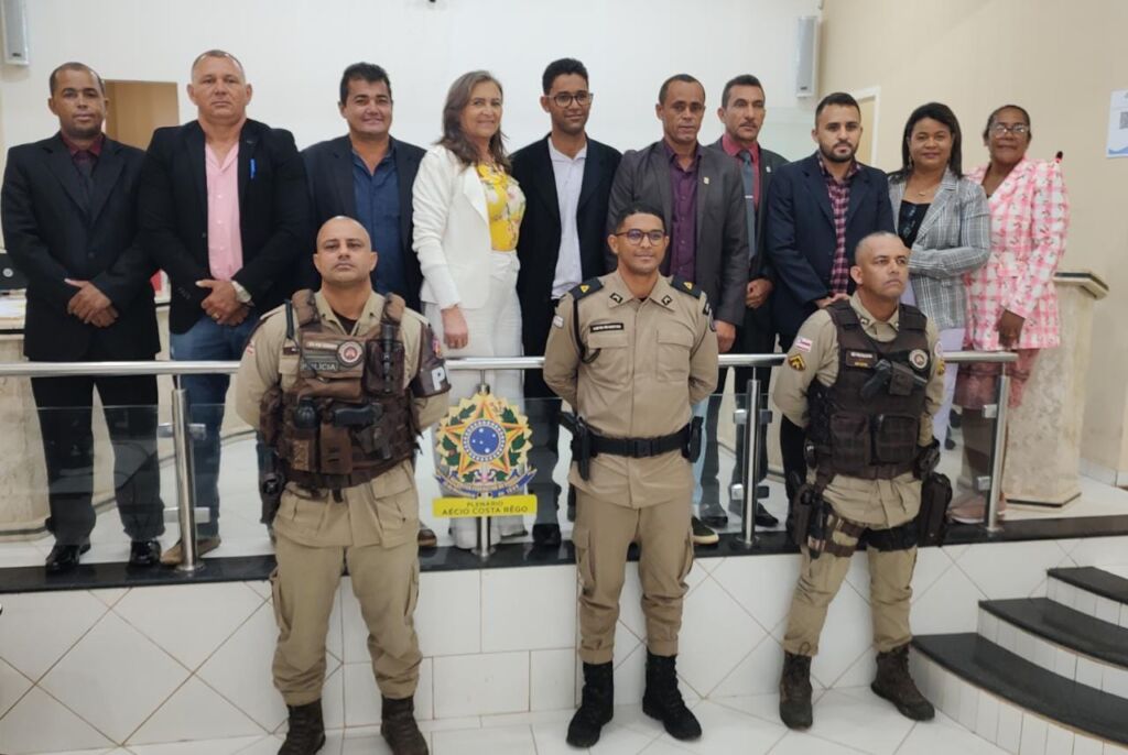 O Subtenente PM Martins, Comandante do 5° Pelotão/Ourolândia, representando o Ten Cel PM Reinaldo Fernandes, Comandante da 24ªCIPM, Unidade Operacional subordinada ao Comando de Policiamento da Região Norte – CPRN, comandado pelo Cel PM Valter Araujo, na manhã desta segunda-feira (28), participou da Sessão Ordinária da Câmara de Vereadores de Ourolândia, oportunidade em que utilizou a tribuna livre para falar sobre a atuação da PMBA, através da 24ªCIPM, no policiamento ostensivo e preventivo na região de Ourolândia, tirou dúvidas da comunidade local e abordou aspectos gerais sobre a segurança pública na região.