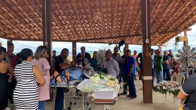 Flávia Carneiro, de 34 anos, uma das sete sobreviventes do acidente entre um caminhão e um ônibus de turismo, que terminou com 24 mortes, na Bahia, acompanhou o velório da filha, Isabela Santos de Almeida, de 14 anos, deitada em uma maca.