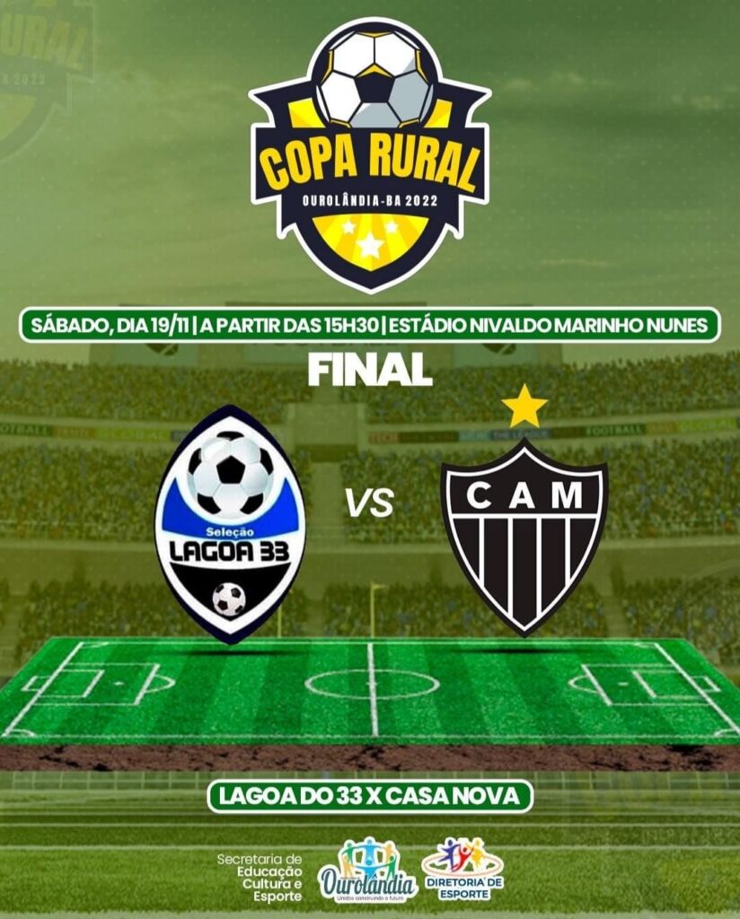 Neste próximo sábado, dia 19 de novembro 2022, será realizada mais uma partida valida pela Copa Rural 2022, mas dessa vez valendo a grande final da copa, a disputa será entre as equipes de Lagoa 33 e Casa Nova, preparem se para vibrar e torcer, e acompanhe conosco quem será o grande ganhador da Copa Rural 2022.
