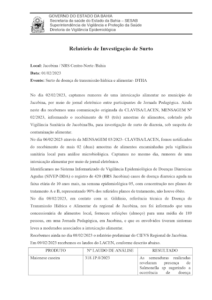 A Superintendência de Vigilância e Proteção à Saúde (Suvisa) divulgou nesta quinta-feira (15) o relatório sobre os casos de intoxicação alimentar ocorridos em Jacobina e que acometeram cerca de 189 participantes da Jornada Pedagógica 2023 no dia 1º de fevereiro.
