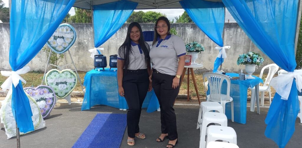 A equipe da funerária montou um estande em frente ao cemitério Jardim da Saudade, lá estiveram realizando: