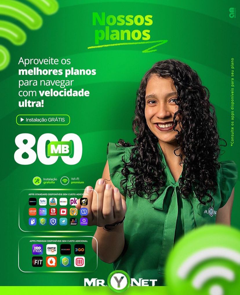 É internet de fibra óptica e com planos de até 800MB, parece até bom demais para ser verdade, mas é só a @mr.ynet