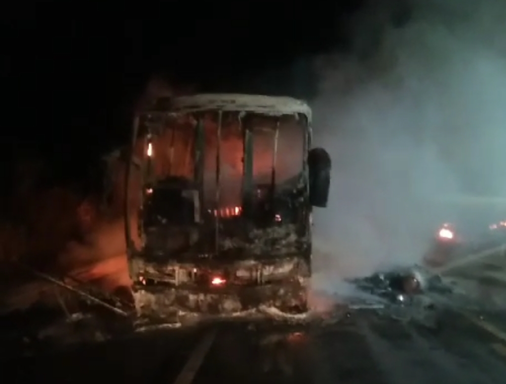 ÔNIBUS QUE FAZ LINHA ENTRE UMBURANAS E SAO PAULO PEGA FOGO DURANTE VIAGEM.
