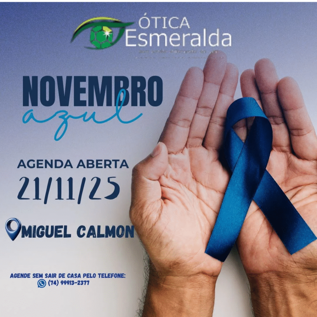 Atenção, moradores de Miguel Calmon e Lagoa do 33! Em apoio ao Novembro Azul, campanha de conscientização sobre a saúde do homem e prevenção ao câncer de próstata, a Ótica Esmeralda está realizando atendimentos oftalmológicos itinerantes nas comunidades.