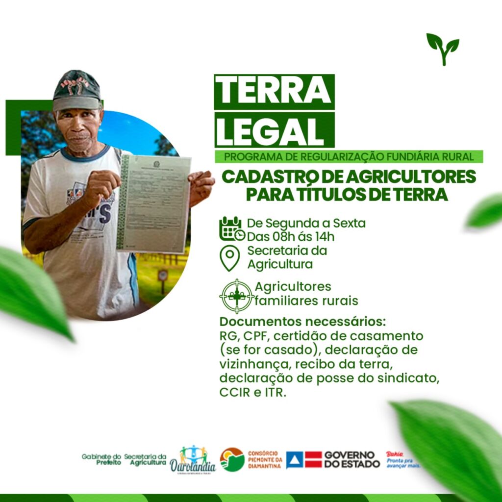 Os agricultores do município de Ourolândia já podem se cadastrar para regularizar a documentação de suas propriedades e poder receber o título de terra. A ação faz parte do Programa de Regularização Fundiária Rural.