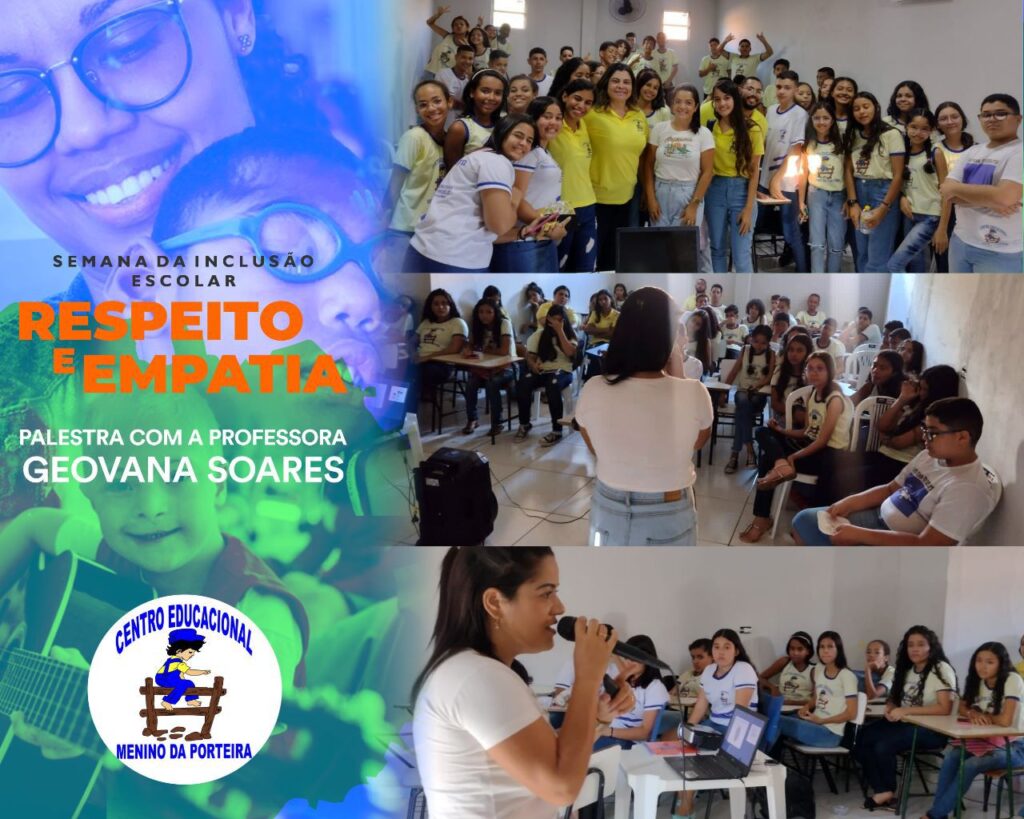 Na última quinta-feira, dia 23 de março, ocorreu uma palestra incrível que teve por tema: “Inclusão escolar, respeito e diversidade”. Foi sediada no CEMP (Centro Educacional Menino da Porteira) para as turmas do 7° ano ao Ensino Médio.