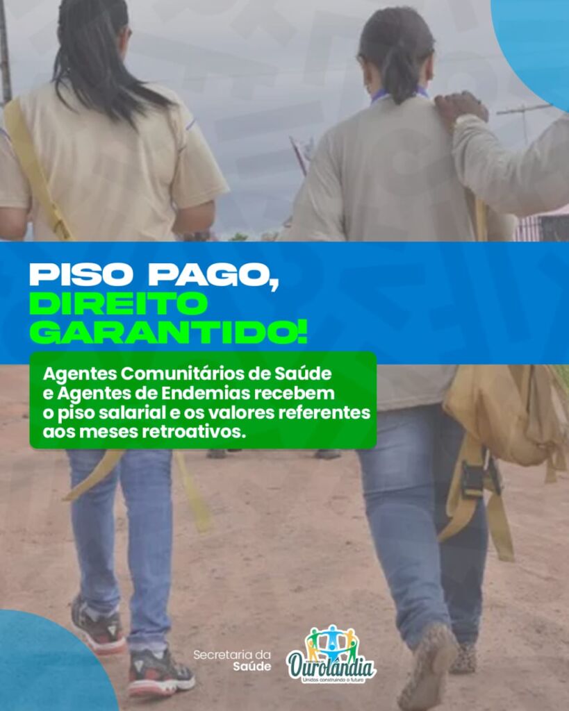 A Prefeitura de Ourolândia realizou neste mês o pagamento do piso salarial aos Agentes Comunitários de Saúde e aos Agentes de Combate a Endemias do município. O repasse foi realizado junto a Secretaria de Saúde, entidade a qual os profissionais estão diretamente ligados.