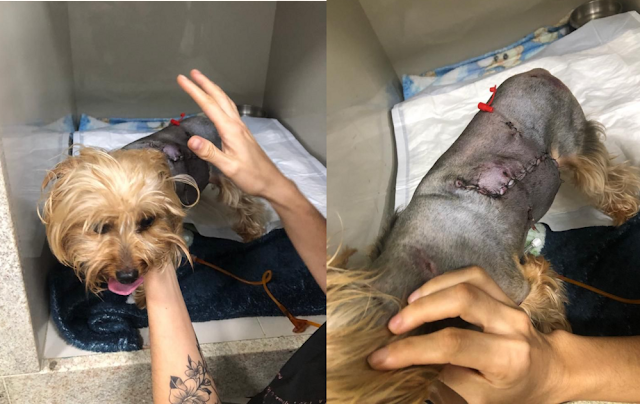 Após o susto, Acimi levou a cachorra imediatamente para a emergência de um hospital veterinário. De acordo com ela, o animal teve muitos ferimentos e precisou ser submetido a uma cirurgia. “Ela ficou bastante machucada, a mordida do cachorro dilacerou a parte abdominal e os órgãos saíram do lugar. Ficou muito mal, teve muitas perfurações, mas os órgãos não ficaram expostos. Então, fizeram uma cirurgia de duas horas para que evitar algo pior com ela”, conta.