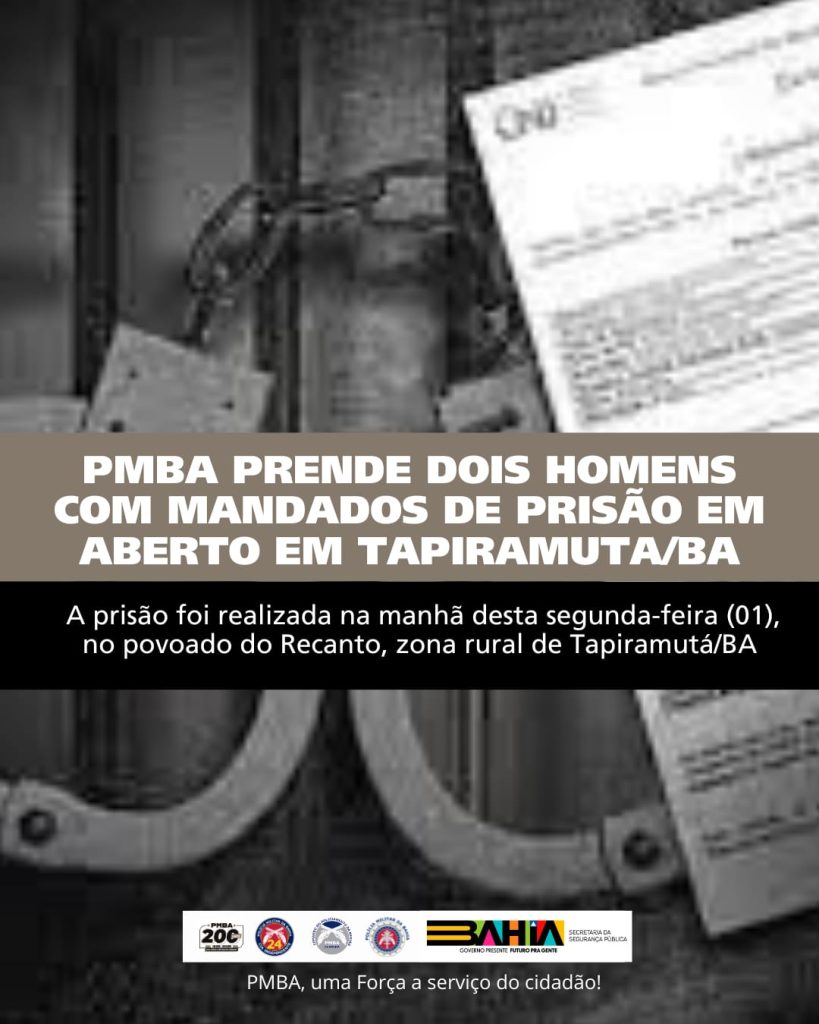 Na manhã desta segunda-feira (01), uma operação conjunta das guarnições de Tapiramutá, Piritiba e Miguel Calmon, realizada no povoado de Recanto, zona rural da cidade de Tapiramutá/BA, resultou na prisão de 02 (dois) homens com mandados de prisão pendentes de cumprimento e na apreensão de 01 (uma) espingarda de fabricação artesanal.