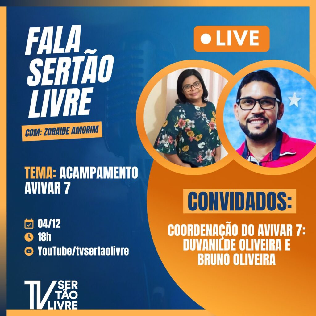 Nesta segunda, dia 4 de dezembro de 2023, a partir das 18 horas temos um encontro marcado. Hoje teremos mais um episódio do nosso podcast e dessa vez será por um motivo muito especial.Neste episódio teremos como convidados a coordenação do Avivar 7 representada por Bruno Oliveira e Duvanilde Oliveira, os mesmos estarão falando um pouco mais sobre o que vai rolar no Acampamento Avivar 7.Se liga no YouTube da tv sertão livre, as 18h