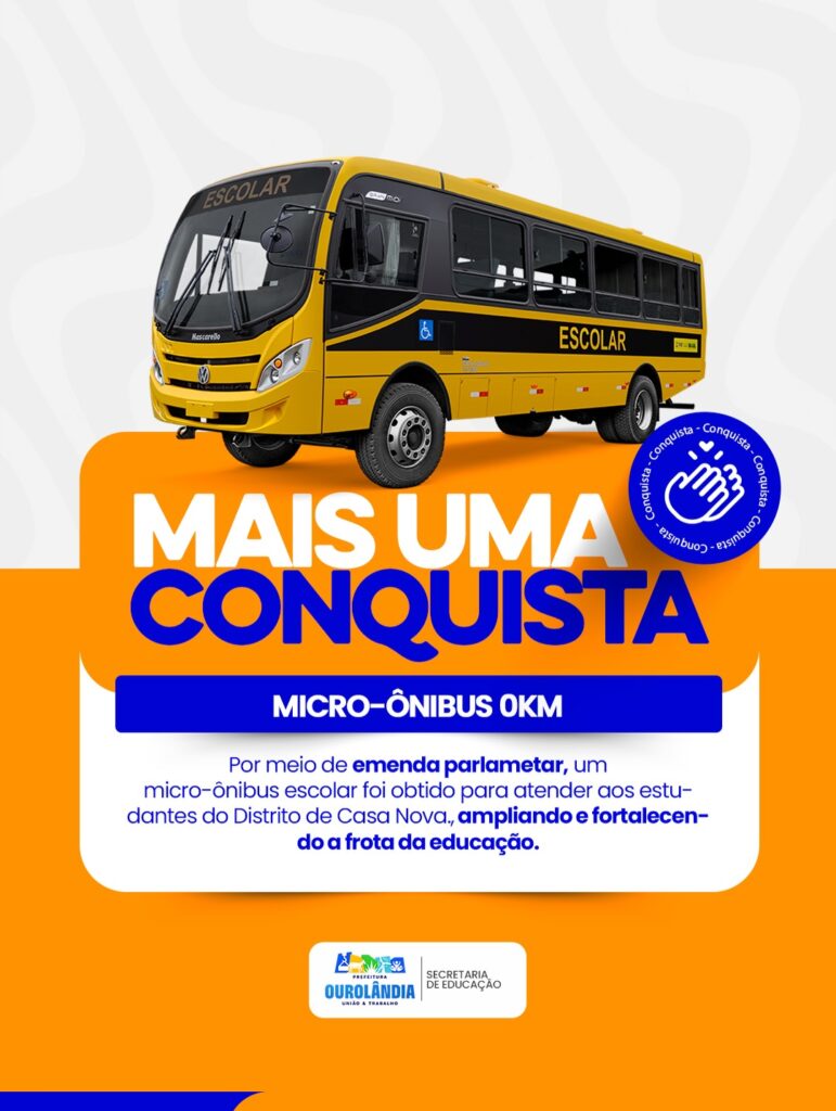 A entrega integra o plano de modernização da frota pública e reforça o compromisso da Prefeitura de Ourolândia com o desenvolvimento educacional e social do município.