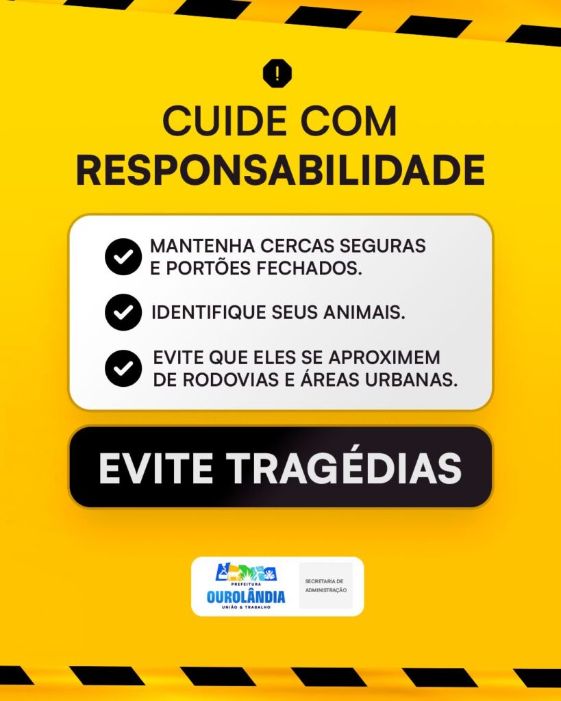 A Prefeitura de Ourolândia reforça o compromisso com a segurança no trânsito e o bem-estar dos animais, contando com a colaboração de todos os tutores e cidadãos.