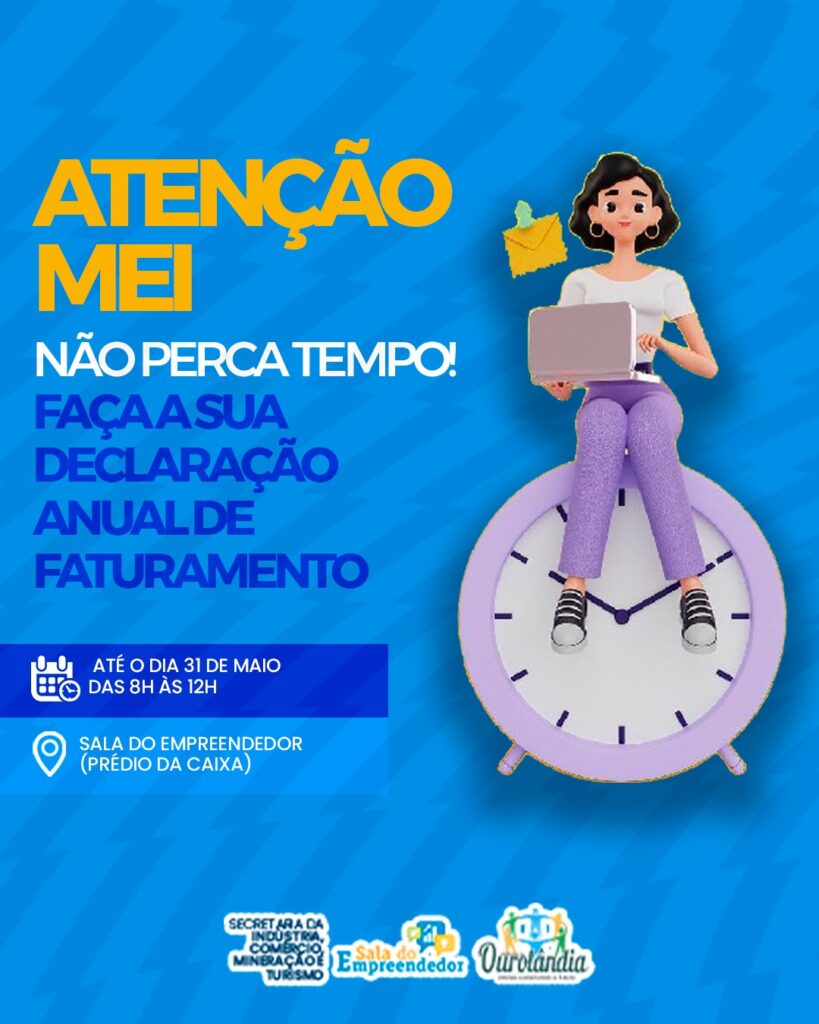 O prazo para os Micro Empreendedores Individuais (MEI) de Ourolândia realizarem a Declaração Anual de Faturamento está prestes a encerrar. Os profissionais tem até o dia 31 de maio para ficar em dias com a documentação e podem fazê-lo gratuitamente na Sala do Empreendedor da cidade.“Estamos à disposição para auxiliar os declarantes a cumprirem o prazo e manterem seus negócios devidamente regularizados”, afirmou a responsável pela Sala do Empreendedor de Ourolândia. A declaração deve ser enviada mesmo que a empresa não tenha tido nenhum faturamento no ano passado, pois se não for feita pode resultar em multas geradas automaticamente.Para fazer a declaração, os microempreendedores podem comparecer Sala do Empreendedor, localizada no prédio da Caixa Econômica Federal, de segunda a sexta-feira, das 8 às 14 horas. É necessário informar o número do CNPJ e o valor do faturamento do ano anterior, caso tenha ou não emitido nota fiscal.Assessoria Geral de Comunicação Prefeitura Municipal de Ourolândia