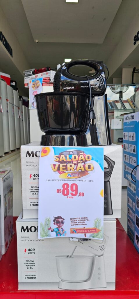Batedeira Mondial Prática: Potência de 400W e tigela de 3,6L para suas melhores receitas. R$ 89,90 à vista.