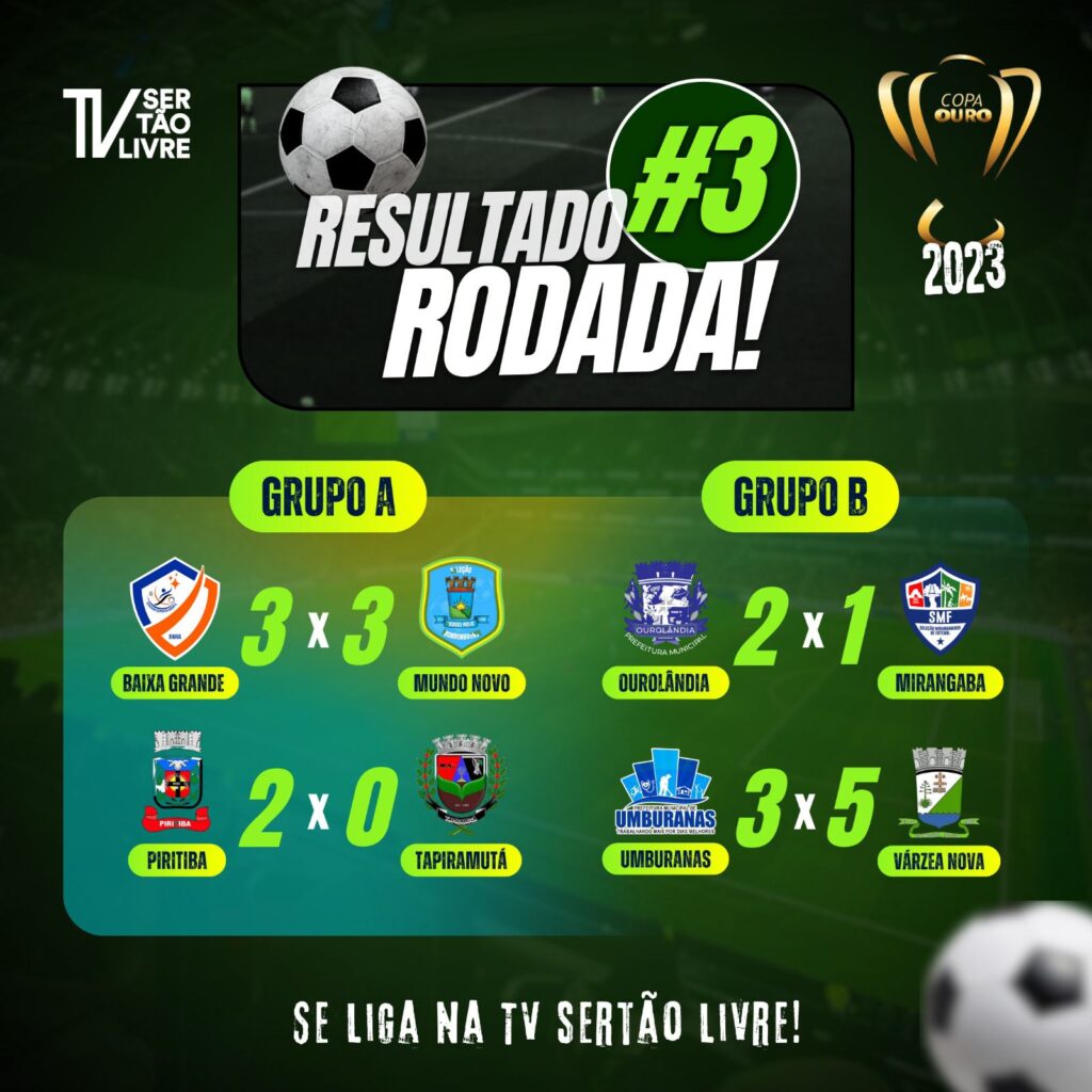 Mundo Novo empatou em 3 x 3 com Baixa Grande, enquanto Piritiba ganhou de Tapiramutá por 2 x 0.