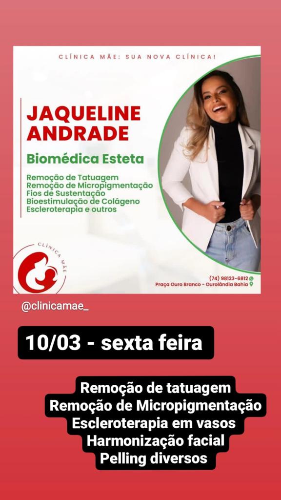 Na próxima sexta-feira (10/03), a biomédica esteta Jaqueline Morais estará fazendo atendimento para remoção de tatuagem, remoção de micro, fio de sustentação, bioestimulação e muito mais.