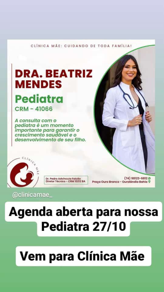 -Agenda aberta com a pediatra Dra. Beatriz Mendes, marque já q sua consulta para conferir a saúde do seu pequeno;