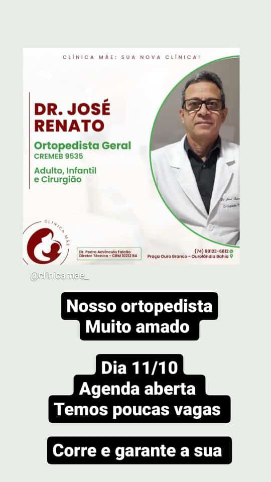 Poucas vagas para atendimento com o ortopedista Dr. José Renato, médico cirurgião e especialista no cuidado de adultos e crianças.