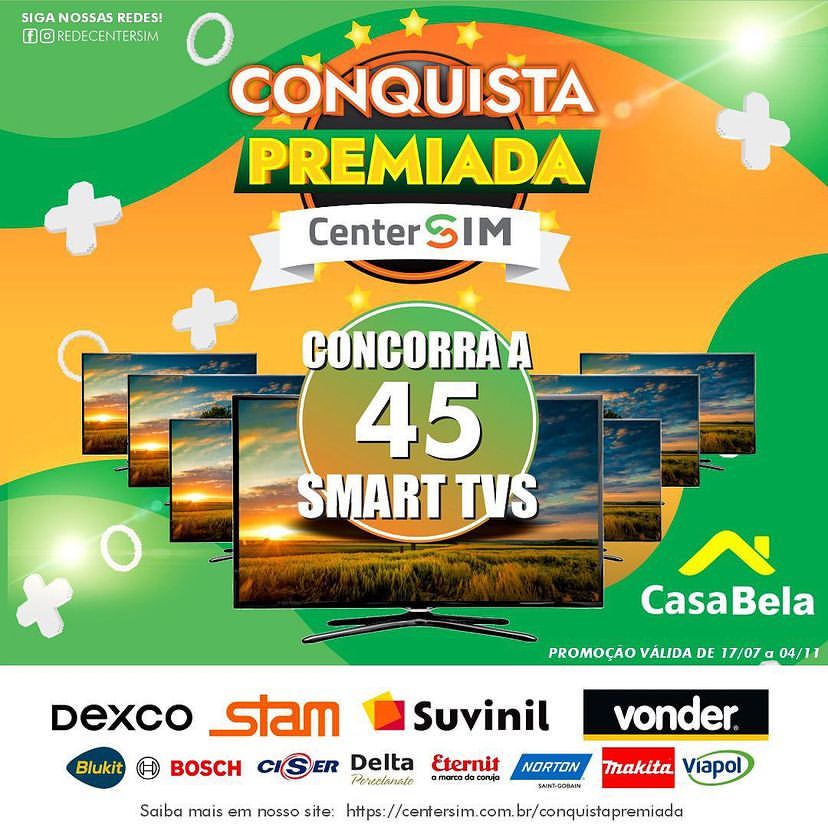 Ao comprar na Casa Bela você estará concorrendo a 45 Smart TVs, mas correr que essa promoção só será válida até o dia 04 de novembro de 2023.