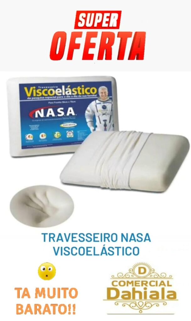 Os travesseiros N.A.S.A. Viscoelásticos possuem uma espuma extremamente macia, te propondo mais conforto na hora de dormir e melhorando a qualidade do seu sono, os travesseiros N.A.S.A. está com super oferta, não perca tempo e vá até Dahiala Comercial e adquira já o seu pelo melhor preço.