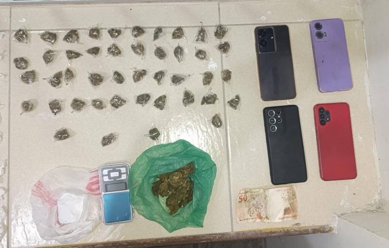 Na continuidade da ação, J. E. informou aos policiais que possuía mais entorpecentes em sua residência, localizada na Rua Nova. A diligência prosseguiu até o local, onde foram encontradas mais porções de substância análoga à maconha.
