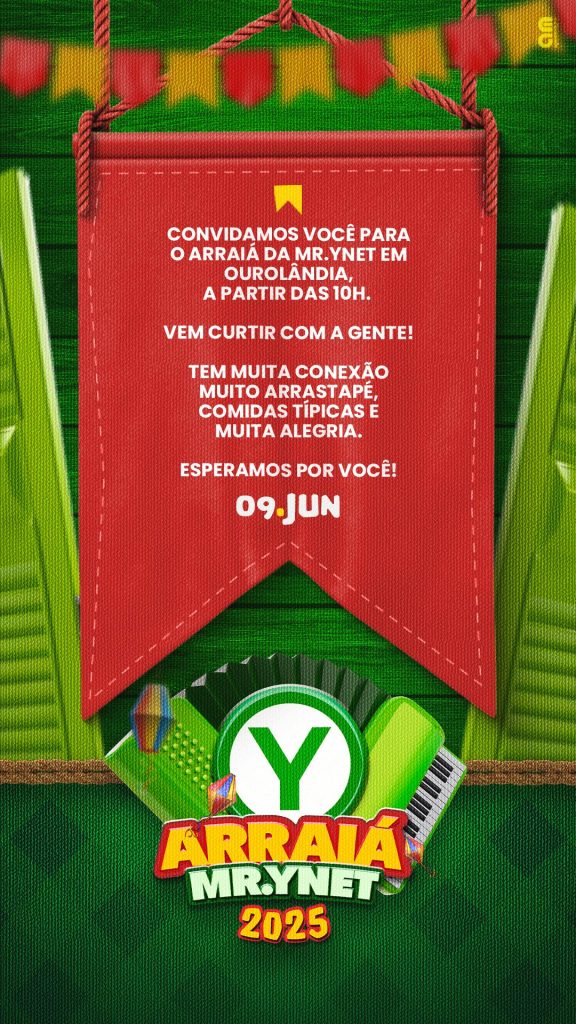 Atenção, povo de Ourolândia e região! A MRYNet preparou um São João especial e você é nosso convidado mais que especial para o Arraiá da MRYNet, que acontece neste domingo, dia 09 de junho de 2025, a partir das 10h da manhã!
