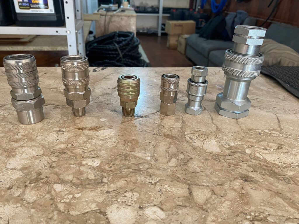 O material de construção do engate rápido hidráulico alta pressão é o aço galvanizado e inox.